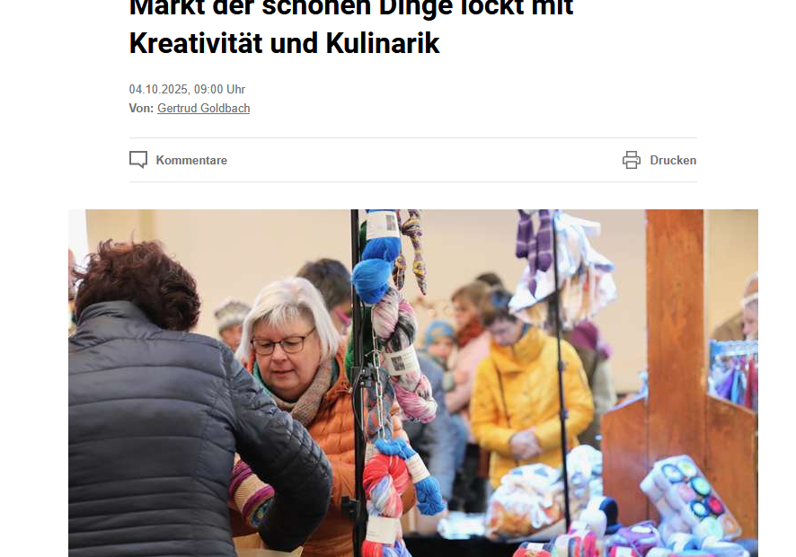 Von Gertrud Goldbach – 04.10.2025 Online hier lesen: https://www.come-on.de/volmetal/kierspe/markt-der-schoenen-dinge-lockt-mit-kreativitaet-und-kulinarik-93968498.html